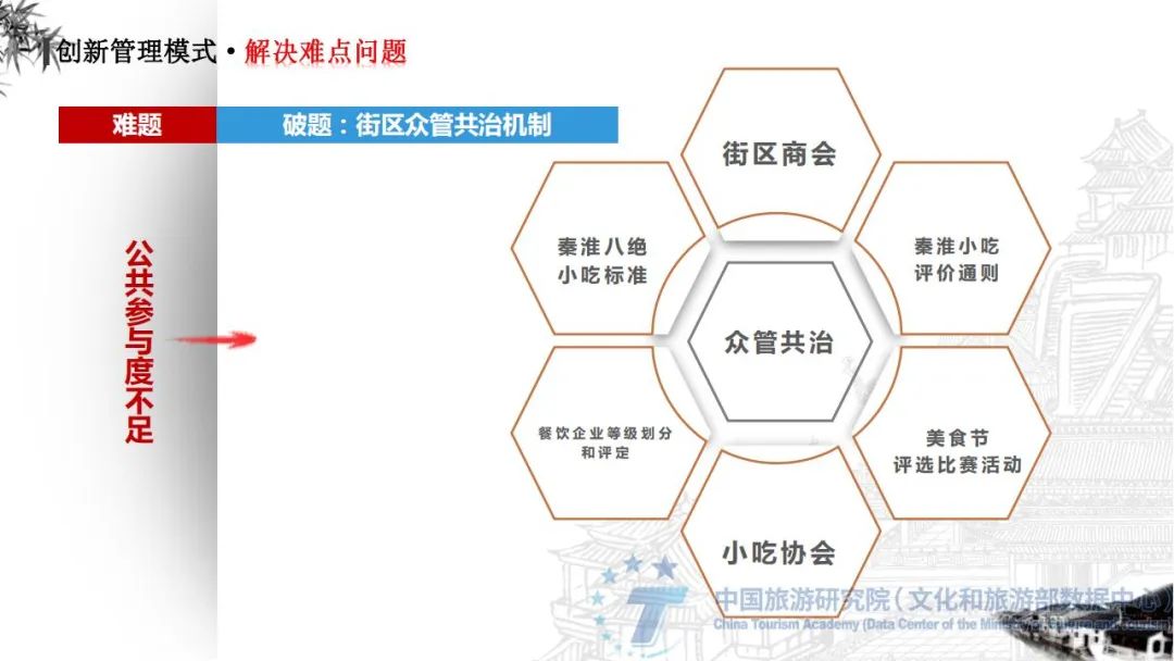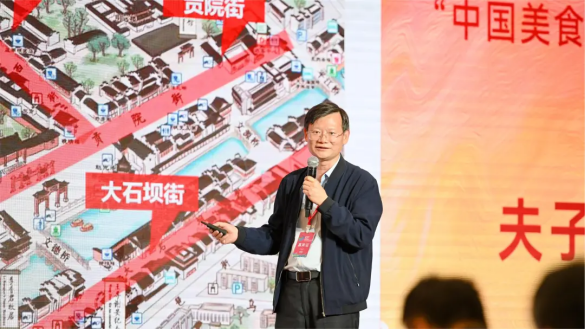 Jiang Yongqiang, deputy director of the Management Committee of Nanjing Confucius Temple-Qinhuai Scenic Belt Scenic Area, shared his experience in the development of food tourism on behalf of Nanjing Confucius Temple Pedestrian Street, the benchmark of "China's Top Ten Food Tourism Streets".