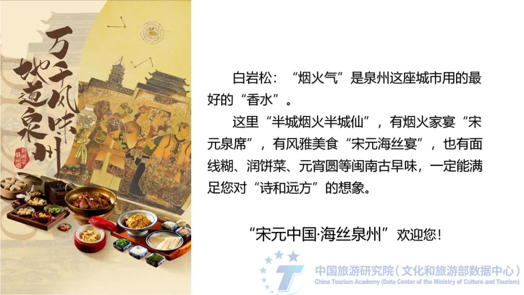 Wu Lingna, director of the Cultural and Tourism Economic Office of Quanzhou Municipal Bureau of Culture, Radio, Film and Tourism, shared her experience in the development of food tourism on behalf of Quanzhou, a benchmark of the “Top Ten Cities for Food Tourism in China”.