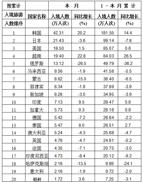 Major source markets in May 2015