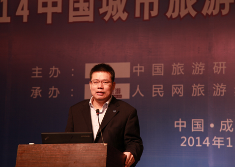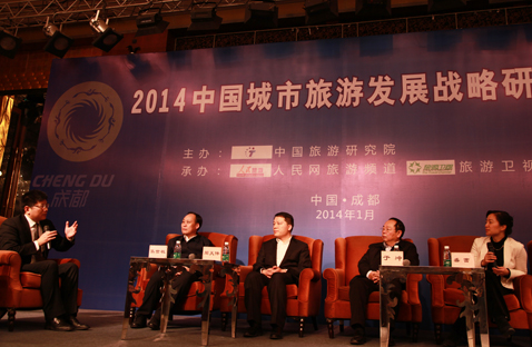 2014年1月10日上午,由中国旅游研究院主办、人民网旅游频道、旅游卫视承办的 "2014中国城市旅游发展战略研讨会"在成都召开。中国旅游研究院院长戴斌教授、山东省旅游局局长于冲、成都市人民政府副秘书长曾敏、北京市旅游发展委员会副主任安金明、四川省旅游局副局长宋铭、成都市旅游局副局长杨齐英、石家庄市人民政府副秘书长刘明亮、苏州市人民政府副市长盛蕾、洛阳市人民政府副市长张世敏、黄山市人民政府副市长周天伟、延安市人民政府副秘书长高文斌等出席了发布会。来自全国40多个旅游城市政府和旅游行政主管部门领导和业界高管、成都市旅游产业领导小组22个成员单位分管领导、成都市20个区(市)县人民政府分管领导和旅游行政主管部门负责人以及人民日报、新华社、中央电视台、中国日报、中央人民广播电台、人民日报海外版、人民网、中国网、旅游卫视、成都电视台、海蓝电视、中国旅游报、中国旅游网、成都日报等媒体机构的代表也参加了发布会。