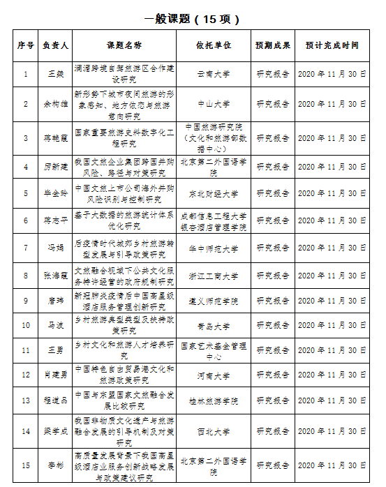 2020年文化和旅游宏观决策课题已完成受理申报、资格审查、评审和审批等程序,现将课题立项名单予以公布。