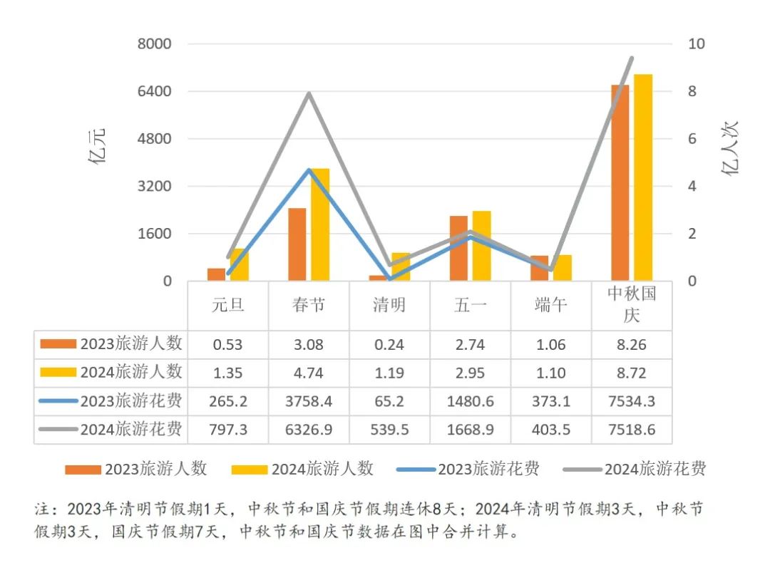 2024年国内旅游花费5.75万亿元,比2023年增加0.84万亿元,增长17.1%。