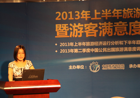 2013年7月11日由中国旅游研究院主办,人民网旅游频道、旅游卫视协办的2013年上半年旅游经济运行分析暨游客满意度调查报告发布会在人民网演播室举行。中国社会科学院旅游研究中心主任张广瑞研究员、北京市旅游发展委员会旅游环境与公共服务处处长王清、海航旅业战略与发展创新部总经理孙金伟先生、易生旅游旅游发展事业部总经理郑黎东、中国旅游研究院产业所所长李仲广副研究员等出席了发布会。来自人民日报、新华社、中央电视台、中央人民广播电台、中国国际广播电台、中国旅游报、经济日报、大公报、央视网、中国网、新浪网、搜狐网等媒体机构代表也参加了发布会。