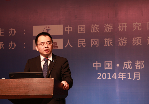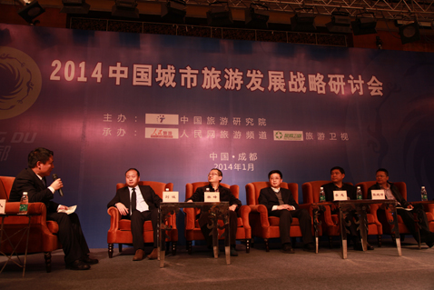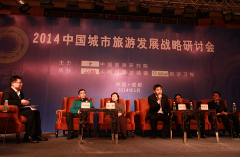 2014年1月10日上午,由中国旅游研究院主办、人民网旅游频道、旅游卫视承办的 "2014中国城市旅游发展战略研讨会"在成都召开。中国旅游研究院院长戴斌教授、山东省旅游局局长于冲、成都市人民政府副秘书长曾敏、北京市旅游发展委员会副主任安金明、四川省旅游局副局长宋铭、成都市旅游局副局长杨齐英、石家庄市人民政府副秘书长刘明亮、苏州市人民政府副市长盛蕾、洛阳市人民政府副市长张世敏、黄山市人民政府副市长周天伟、延安市人民政府副秘书长高文斌等出席了发布会。来自全国40多个旅游城市政府和旅游行政主管部门领导和业界高管、成都市旅游产业领导小组22个成员单位分管领导、成都市20个区(市)县人民政府分管领导和旅游行政主管部门负责人以及人民日报、新华社、中央电视台、中国日报、中央人民广播电台、人民日报海外版、人民网、中国网、旅游卫视、成都电视台、海蓝电视、中国旅游报、中国旅游网、成都日报等媒体机构的代表也参加了发布会。