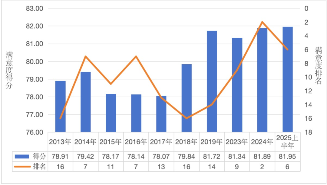 图 大陆居民赴台湾旅游者满意度(2013-2025上半年)