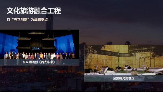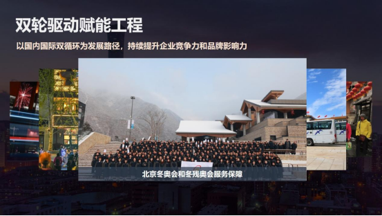 四是双轮驱动赋能工程。集团以国内国际双循环的发展路径,持续提升了企业竞争力和品牌影响力。在国际市场方面,集团在服务保障国际活动的同时,通过首旅集团高端服务体系向世界展示了中国服务。在高水平对外开放的宏观政策指引下,我们还针对入境团队设计了跨区域的文旅项目,串联了中华传统文化体验与现代消费场景,将政策优势转化为企业的发展优势。在国内市场方面,集团持续创新消费场景。在北京中轴线申遗成功后,首旅旅行推出了深度体验产品。最近,我们正在谋划和策展中轴线博物馆,不断做强首店经济,引领环球影城等国际IP。王府井喜悦开设了71家首店店铺,大力发展夜间经济?;非蛴俺浅鞘写蟮来蛟煲徽臼讲鸵槔种行?,入选了文旅部国家级夜间文化和旅游消费集聚区。