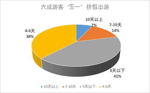 今年“五一”,拼假和错峰出游成趋势。从携程自由行、跟团游产品的统计看,41%的游客选择3天内的行程,38%选择4到6天;选择一周以上的有21%,六成游客拼假出游。从出发日期统计看,节前两天出发的游客占了37%?!拔逡弧奔倨谇傲教斐鲂械目土髯罴校剂?1%。为了错开客流高峰、同时享受优惠价格,越来越多的人主动错峰或者淡季出游。与此同时,通过法定程序增加公共假日延长五一假期成民众呼声。调查数据显示,我国带薪休假制度实际落实比率仅5成,群众愿意通过带薪休假出行旅游的比例超过80%,实际利用带薪休假出游的职工仅为30%。增加法定假日,可更好地满足群众美好生活向往。