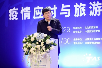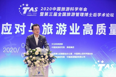 雒树刚部长做了开幕讲话。他指出,在新冠肺炎疫情防控形势持续向好、经济社会秩序逐步恢复的背景下,我们以视频会议形式举办2020年中国旅游科学年会,共同研究疫情应对和旅游业高质量发展,很务实也很必要。疫情发生后,文化和旅游部深入贯彻习近平总书记关于疫情防控重要指示精神,在疫情爆发后第一时间调整工作重心,有效防止了疫情经由旅游活动传播扩散,有力服务了疫情防控大局。针对旅游行业遭遇的困难,文化和旅游部积极协调相关部门,推出一系列针对性政策举措,帮助旅游业渡过难关。随着疫情防控形势好转,文化和旅游部深入学习贯彻习近平总书记关于统筹推进疫情防控和复工复产重要指示精神,帮助旅游业恢复发展。在此过程中,中国旅游协会等行业协会和广大旅游企业、中国旅游研究院等高校、科研机构等积极投入疫情抗击和行业振兴工作中。当前,在党中央坚强领导下,全国人民团结一致、顽强拼搏,在常态化疫情防控中经济社会运行逐步趋于正常,生产生活秩序加快恢复。但是,国际疫情仍呈快速扩散蔓延态势,输入性风险仍然较大,给我国疫情防控和经济发展带来新的挑战。我们要有信心、有定力,有化危为机的勇气,以更大的政策力度、更实的扶持举措来对冲疫情影响,推动旅游业高质量发展。当前,旅游科学研究要围绕“一个主题”“五个兼顾”来开展?!耙桓鲋魈狻本褪墙艚粑坡糜我蹈咧柿糠⒄拐飧鲋魈?。“五个兼顾”包括兼顾当前和长远、兼顾文化和旅游、兼顾理论和应用、兼顾国内和国际、兼顾人文和科技。今后,文化和旅游行政部门将一如既往地支持旅游研究、支持中国旅游科学年会,通过项目资助、课题委托、平台搭建等多种渠道对大家的研究给予资助,也希望专家学者继续研究文化和旅游工作,继续为旅游业应对疫情、恢复发展建言献策,为行业提供更多智力支持!