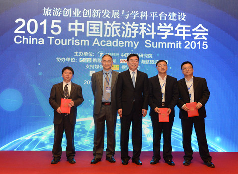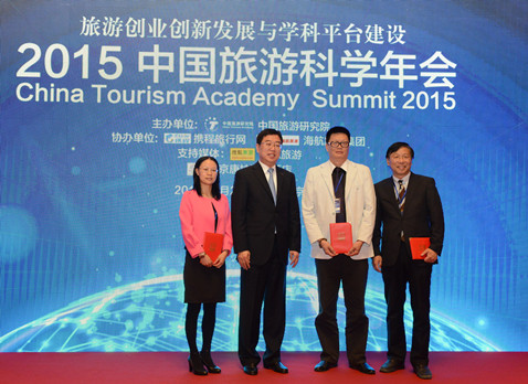 最后,戴斌院长为2015年中国旅游科学年会论文获奖嘉宾颁发了优秀论文奖,并以“相信”为主题做总结发言。他表示,改革开放以后,社会价值取向日趋多元化,为创业创新提供了肥沃的土壤。学界同仁需要与创业者同行,加强与产业实践互动,为旅游产业实践提供指导,引领产业发展。他相信,有着5000年文明历史的中国,一定能够诞生出对世界旅游业有影响、对人类的商业文明有贡献的大企业家。在政治、经济环境不断开放的大背景下,产学两界人士,只要有理想、有责任、有坚守,一定能把大众旅游初级阶段,推向更高级的阶段。