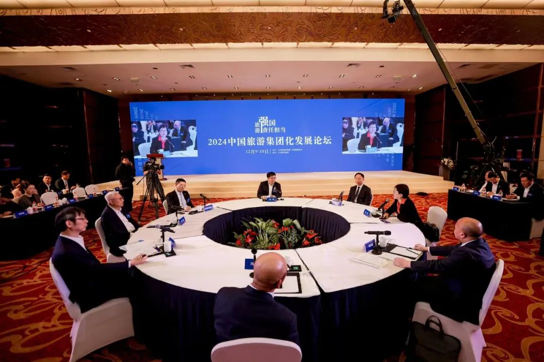 2024中国旅游集团化发展论坛于2024年12月9-11日在北京歌华开元大酒店成功召开。本届论坛的主题为“旅游强国 责任担当”,由中国旅游研究院与中国旅游协会联合主办。戴斌院长主持了“旅游集团领导人对话会——旅游强国与企业担当”环节,与山东文旅集团董事长丁艺、中国长江航运集团总经理丁磊、锦江旅游首席执行官郑蓓、岭南集团副总经理李峰、湖北文旅集团副总经理周永彪、春秋集团总裁王炜、众信旅游集团董事长冯滨就旅游强国建设背景下旅游企业的发展方向与责任担当进行了探讨。现将对话会嘉宾主要观点分享如下。